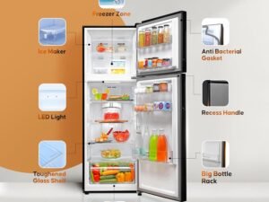 Haier 237L 2 Star Frost Free Bottom Mount Refrigerator|Premium Black Glass|8 In 1 Convertible Modes|Jhukna Mat-Bottom Freezer|200% Faster Ice Making in 49 Minutes (HRB-2872PKG-P, Black Glass)