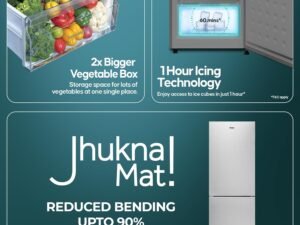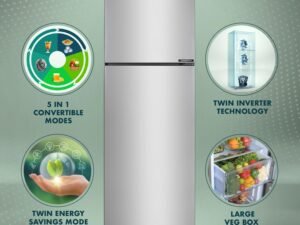 Haier 328 L, 3 Star, Convertible 10-in-1, Triple Inverter & Dual Fan Motor Technology, Frost Free Double Door Refrigerator (HEF-333TS-P, Inox Steel)