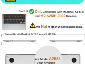 MOCA Case for New MacBook Air 13.6-inch (M4 A3240, M3 A3113, M2 A2681) with Touch ID, 2025 2024 2022 Release – M2 M3 M4 Air 13 Laptop Protective Plastic Hard Cover (Crystal Clear)