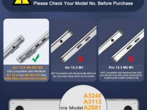 MOSISO Compatible with MacBook Air 13 inch Case 2025 2024 2023 2022 M4 A3240 M3 A3113 M2 A2681, Plastic Hard Shell&Keyboard Cover&Screen Film&Type C for MacBook Air 13.6 inch Case, Smoke Black