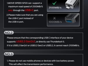 MOVE SPEED 1TB External SSD, 2100MB/s TLC Reliable Transfer Portable SSD with USB 3.2 Gen2x2 + Type C, Cool USB Drive for Phone/Windows/Mac (SP20)