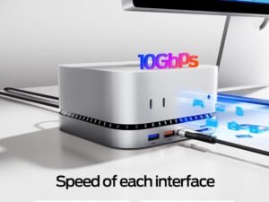 MOVE SPEED Mac mini M4 Dock with 1TB NVMe SSD, 10 in 1 Aluminum Stand Hub, 10Gbps USB-C/A, 4K60Hz HDMI, SD/TF Reader, Space-Saving Vertical Design