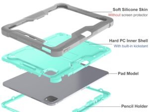 ProElite Rugged Shockproof Heavy Duty Back Case Cover for Apple iPad Pro 11 inch M4 2024 with Apple Pencil Holder, Mint