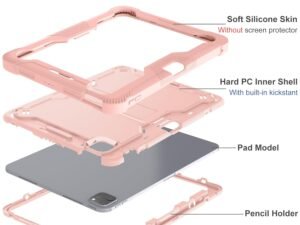 ProElite Rugged Shockproof Heavy Duty Back Case Cover for Apple iPad Pro 11 inch M4 2024 with Apple Pencil Holder, Rose Gold