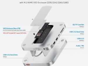 PULWTOP Mac mini M4 Dock with 4TB SSD Enclosure (SSD Not Included), USB C Hub Accessories for Mac mini 2024 M4 Pro with HDMI 4K 60Hz, 3 x USB A 2.0, SD/TF, Audio/Mic