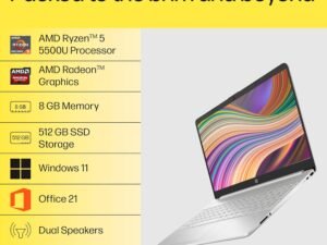 HP 15s, AMD Ryzen 5 5500U (8GB DDR4, 512GB SSD) FHD, Anti-Glare, 15.6”/39.6 cm, Win 11, Office 21, Silver, 1.69 kg, eq2144AU, AMD Radeon Graphics, HD Camera, Dual Speakers Laptop