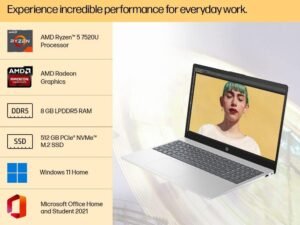 HP AMD Ryzen 5 Quad Core 7520U – (8 GB/ 1TB SSD/Windows 11 Home) Thin and Light Laptop (15.6 Inch, Natural Silver, 1.59 Kg, with MS Office)