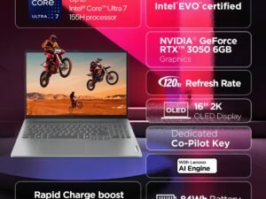 Lenovo IdeaPad Pro 5 Intel Core Ultra 7 155H Built-in AI 16″ (40.6cm) 2K OLED 400Nits 120Hz Laptop (16GB/1TB SSD/NVIDIA RTX 3050 6GB/Win11/MSO 21/FHD+IR Camera/1Yr ADP Free/Grey/1.9Kg), 83D4002NIN