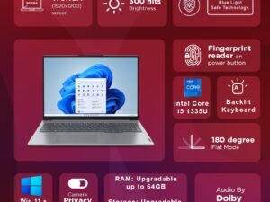 Lenovo ThinkBook 16 Intel Core 5 210H 14th Gen (8GB/512GB SSD/DOS/Fingerprint Reader) 16″ WUXGA IPS 300 Nits Antiglare Thin & Light Laptop/Aluminium Top/Arctic Grey/1Y Warranty/1.7Kg, 21SHS00U00