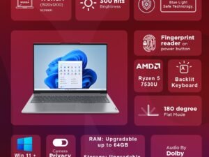Lenovo ThinkBook 16 Ryzen 5 16″ WUXGA IPS Antiglare 300 Nits Thin and Light Laptop (8GB RAM/512GB SSD/DOS/Fingerprint/Arctic Grey/1 Year Onsite/1.7 kg), 21KKA0HFIN