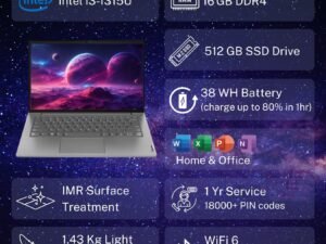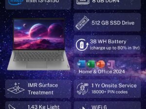 Lenovo V14 Intel Core i3 13th Gen 14″ FHD (1920×1080) Antiglare 250 Nits Thin and Light Laptop (8GB RAM/512GB SSD/Windows 11 Home/Office Home 2024/Iron Grey/1.43 kg), 83A0A0PBIN