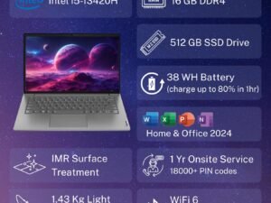 Lenovo V14 Intel Core i5 13th Gen 14″ FHD (1920×1080) Antiglare 250 Nits Thin and Light Laptop (16GB RAM/512GB SSD/Windows 11 Home/Office 2024/Iron Grey/1.43 kg), 83A0A0PTIN