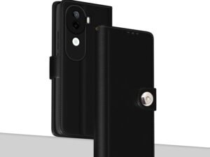 Pikkme Flip Cover Leather Finish | Inside TPU with Card Pockets | Wallet Stand and Shock Proof | Complete Protection Button Flip Case for Vivo V40e 5G / iQOO Z9s 5G(Black)