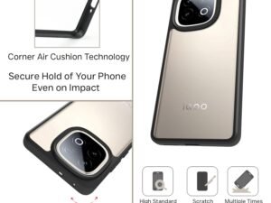 RIGGEAR Shockproof Sleek Hybrid Armor Back Cover Case for iQOO Z10 5G / VIVO T4 5G (Clear PC with Black TPU Bumper)