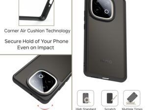 RIGGEAR Shockproof Sleek Hybrid Armor Back Cover Case for iQOO Neo 10 5G (Smoke Black Matte PC and Black TPU Bumper)