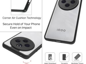 RIGGEAR Shockproof Sleek Hybrid Armor Back Cover Case for iQOO Neo 10 5G (Clear PC and Black TPU Bumper)