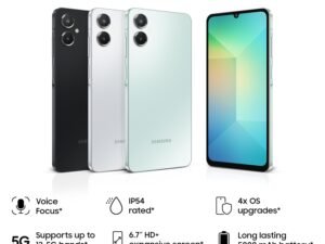 Samsung Galaxy A06 5G (Light Green, 4GB RAM, 64GB Storage) | 50MP Dual Camera | 4 Gen OS Upgrades | IP54 Rating | Voice Focus