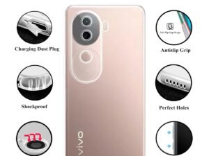 Silicon Back Cover Case for Vivo V40E (5G) / IQOO Z9s (Transparent) Camera Protection with Dust Plug