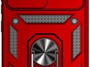SkyTree Robotic Sliding Camera Window Shock Proof Thunder Case, Dual Layer Hybrid Armor Back Cover Case with Kickstand for iQOO Z9s 5G – Red
