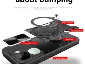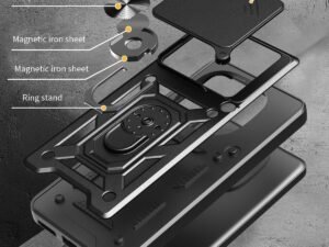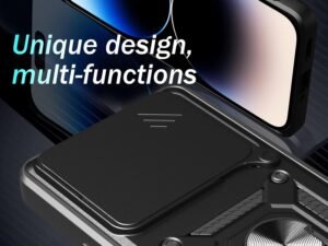 SPAZY CASE® iQOO Z9s Pro 5G / Vivo T3 Pro 5G Back Cover | Heavy Duty Hybrid Case with 360 Degree Rotating Finger Ring Holder + Slider Shutter Camera Protection Case – Black