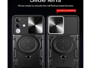 SPAZY CASE® Vivo T4x 5G / iQOO Z10x 5G Back Case | Hybrid Case with 360 Degree Rotating Finger Ring Holder + Slider Shutter Camera Protection Case for Vivo T4x 5G / iQOO Z10x 5G – Blue