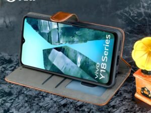 VTEK Flip Cover for iQOO Z9 Lite/Vivo Y28S 5G / Vivo T3 Lite/Vivo Y18 / Vivo Y18e / Vivo Y18i / Vivo Y18t – Premium PU Leather Wallet Case with Magnetic Lock & Stand Feature Brown