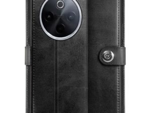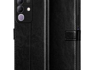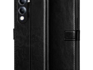 WOW IMAGINE Shock Proof Flip Cover Back Case Cover for Vivo T4 lite 5G | iQOO Z10 lite 5G | Y04 4G | Y19 5G | Y19e (Flexible | Leather Finish | Card Pockets Wallet & Stand | Black)