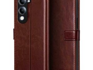 WOW IMAGINE Shock Proof Flip Cover Back Case Cover for Vivo T4 lite 5G | iQOO Z10 lite 5G | Y04 4G | Y19 5G | Y19e (Flexible | Leather Finish | Card Pockets Wallet & Stand | Chestnut Brown)