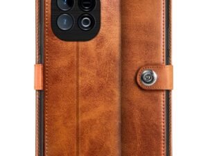 WOW IMAGINE Shock Proof Flip Cover Back Case for iQOO Z10 5G | Vivo T4 5G (Magnetic Button Flip Case | Wallet Pockets & Stand | Leather Finish | Alder Brown)