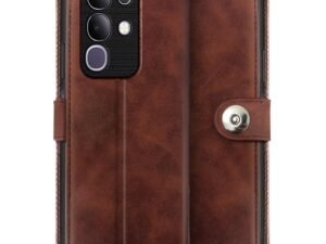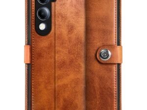 WOW IMAGINE Shock Proof Flip Cover Back Case for Samsung Galaxy M35 5G | Inbuilt Pockets & Stand | Magnetic Button Flip Case | Wallet Style | Leather Finish | Cedar Brown