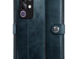 WOW IMAGINE Shock Proof Flip Cover Back Case for iQOO Z9s Pro 5G | Vivo T3 Pro 5G (Magnetic Button Flip Case | Wallet Pockets & Stand | Leather Finish | Oxford Blue)