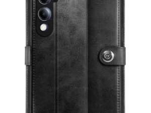 WOW IMAGINE Shock Proof Flip Cover Back Case for iQOO Z9s 5G | Vivo V40e 5G (Magnetic Button Flip Case | Wallet Pockets & Stand | Leather Finish | Haze Black)