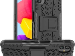 Fitsmart Shockproof Armor Heavy Duty Dazzle Case with Stand Double Protective Back Cover for Samsung Galaxy M05 4G – Black