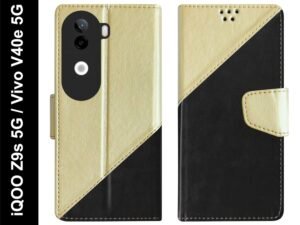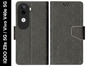 Flip Cover for iQOO Z9s 5G / Vivo V40e 5G Back Cover Case with Magnatic Closure | Inbuilt Stand | Card & Money Pocket (MultiBlack)