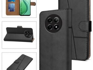 Jkobi Flip Cover Case for Realme Narzo N65 5G (Stitched Leather with Magnetic Closure | Black)