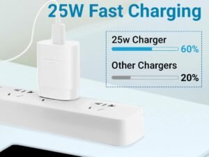 MAK 25W Type C Super Fast Charger Adapter with Type-C Cable Compatible for Samsung A56, A36, F06, F05, F15, A16, M16, M06, M55s, M05, A06, A05, M35, S24 FE, White