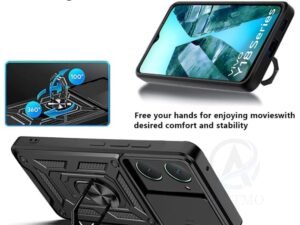 Luxe® Back Cover for iQOO Z9 Lite/Vivo Y28S 5G / Vivo T3 Lite/Vivo Y18 / Vivo Y18e / Vivo Y18i / Vivo Y18t | D10 Tough Armor Case | Sliding Camera Shield | 360° Protection| Kickstand Holder