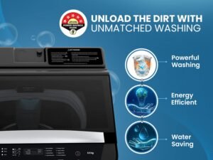 Havells Lloyd 7.5 Kg 5 Star Semi-Automatic Top Load Washing Machine (GLWMS75ANGEL, Black & Green, Active Soak)