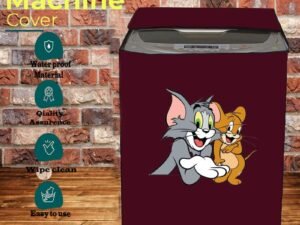 KVAR water dust Protection washing machine cover for LG 7 kg 5 Star Semi-Automatic Top Load (Wind Jet Dry Technology, P7010RRAZ.ABGQEIL) Maroon colour with print