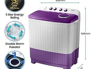 Samsung 7 kg, 5 star, Semi-Automatic Washing Machine (WT70M3000UU/TL, Air Turbo Drying, LIGHT GRAY, 5 Year Warranty on Wash Motor)