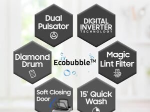 Samsung 7 kg, 5 star, EcoBubble Technology, Hygiene Steam with Inbuilt Heater, Digital Inverter, Fully-Automatic Front Load Washing Machine (WW70R22EK0X/TL, INOX GRAY)