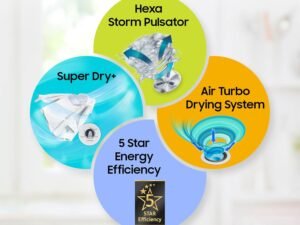 Samsung 9 kg, 5 Star, AI Control, AI Ecobubble, Super Speed, Wi-Fi, Hygiene Steam with Inbuilt Heater, Digital Inverter, Fully-Automatic Front Load Washing Machine (WW90DG6U24ASTL, NAVY)