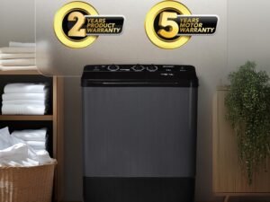 Skin World Semi Automatic Washing Machine Plane Cover | Waterproof & Dustproof | Compatible with LG 6kg, 6.5kg, 7kg, 7.5kg | Polyester Protection – Grey