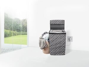 Stylista Waterproof and Dustproof Polyester Washing Machine Cover Compatible for Panasonic 6 Kg Fully-Automatic Top Loading NA-F60LF1HRB, Basketweave Pattern Grey