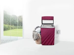 Stylista Waterproof and Dustproof Polyester Washing Machine Cover Compatible for Panasonic 6 Kg Fully-Automatic Top Loading NA-F60LF1HRB, Checkered Pattern Maroon