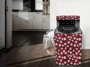 The Furnishing Tree Washing Machine Cover Floral Pattern Red Base Compatible for Whirlpool 7 Kg Fully-Automatic Top Loading Whitemagic Royal Genx