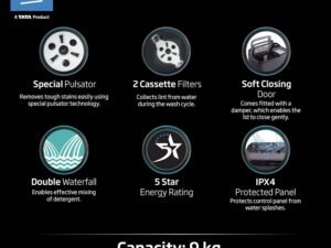 Voltas Beko, A Tata Product 9 Kg 5 Star Semi-Automatic Top Loading Washing Machine (WTT90UHA/OK5B1B1S23, Black, Pulsator Wash Method and Double waterfall technology)