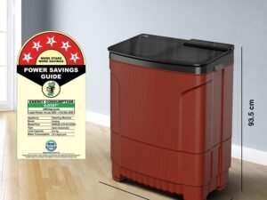 Godrej 8 Kg 5 Star With 460 PowerMax Wash Motor Semi-Automatic Top Load Boderless Design Washing Machine Appliance (WSEDGE ULT 80 5.0 DB2M CSRD, Crystal Red, With Toughened Glass Lid)