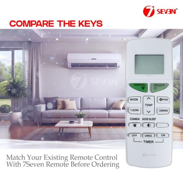 7SEVEN® Compatible with Daikin Ac Remote Original ARC484B12 Model 132D Suitable 1 1.5 2 Ton Split and Window Air Conditioner with Backlit 38kHz 14 Keys
