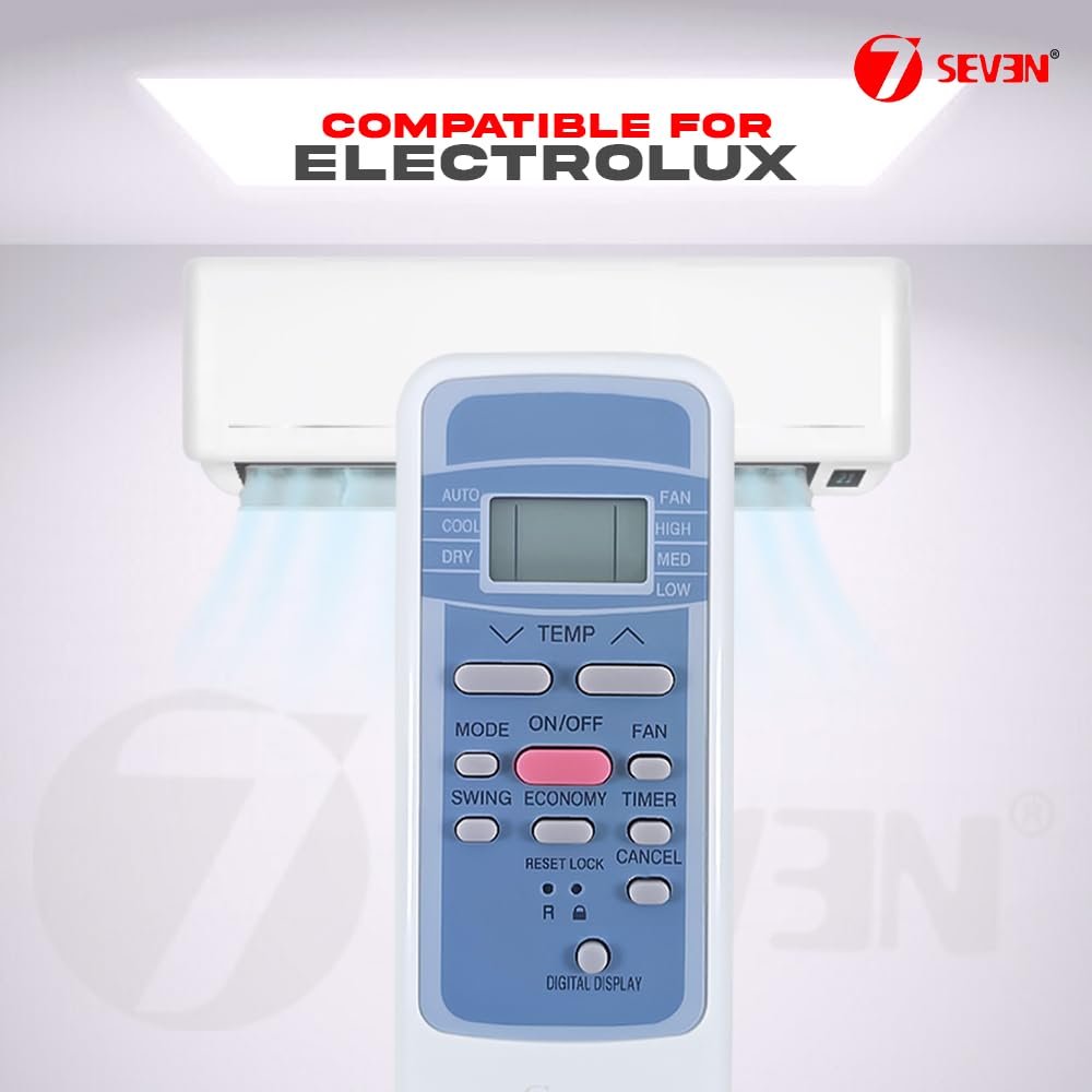7SEVEN® Compatible with Electrolux AC Remote Control R51K/BGE Model 152A Suitable for 1 1.5 2 Ton Split and Window Air Conditioner – Match Each Key by Key Exactly with Existing AC Remote Function
